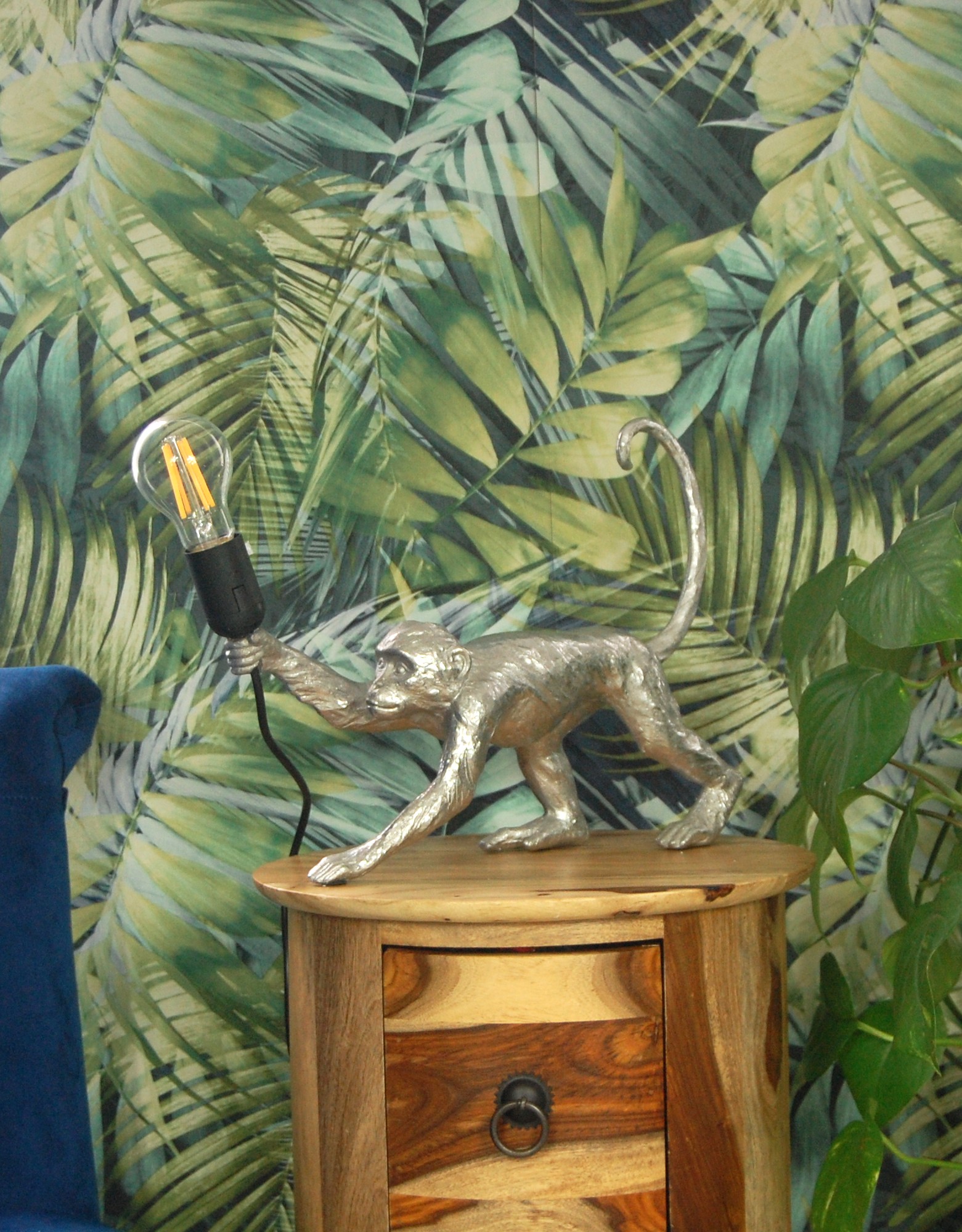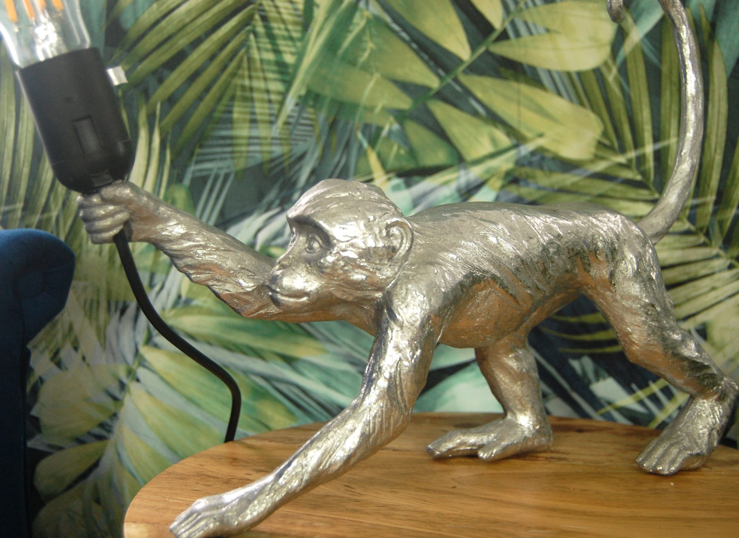 The Antique Silver Crawling Monkey Lamp is perfect for anyone who appreciates one-of-a-kind home accents that blend form and function. Its design and practical illumination make it an ideal addition to living rooms, bedrooms, offices, and beyond. Infuse your space with a touch of playful sophistication and let this captivating lamp become the centre piece of your decor.