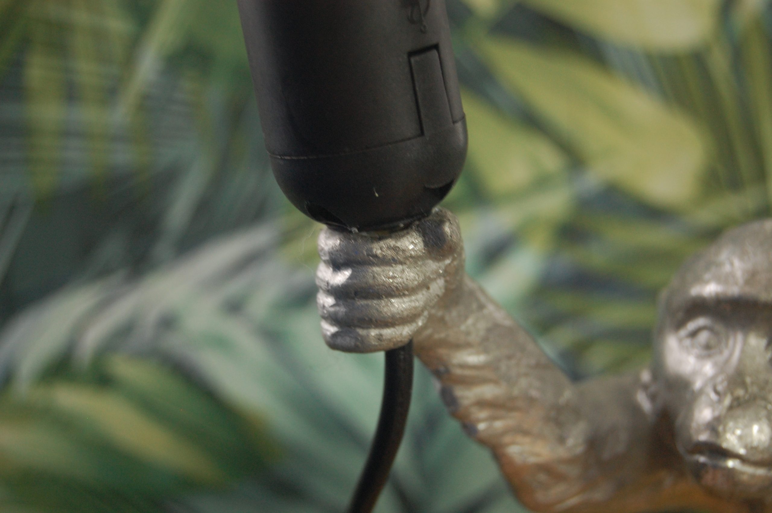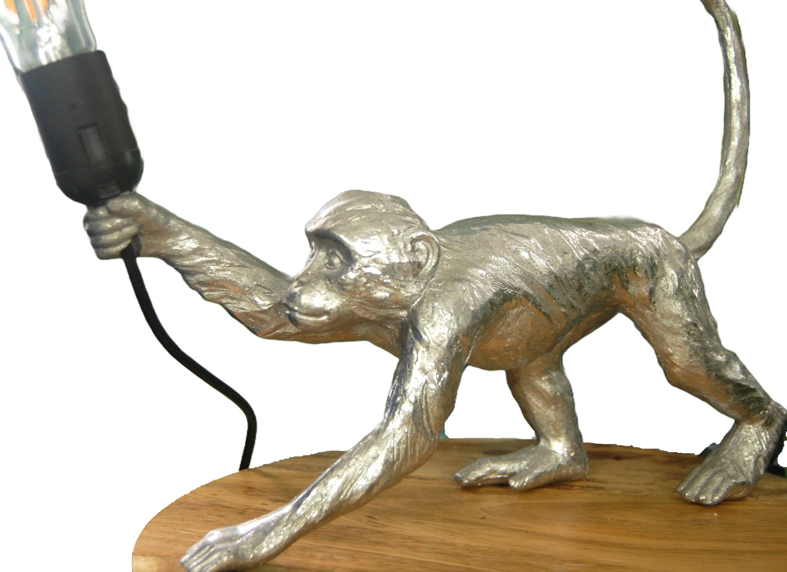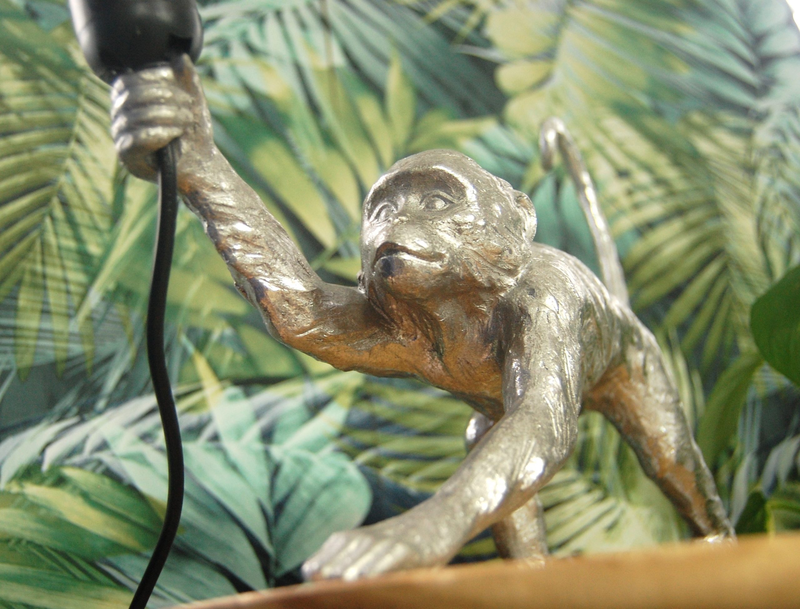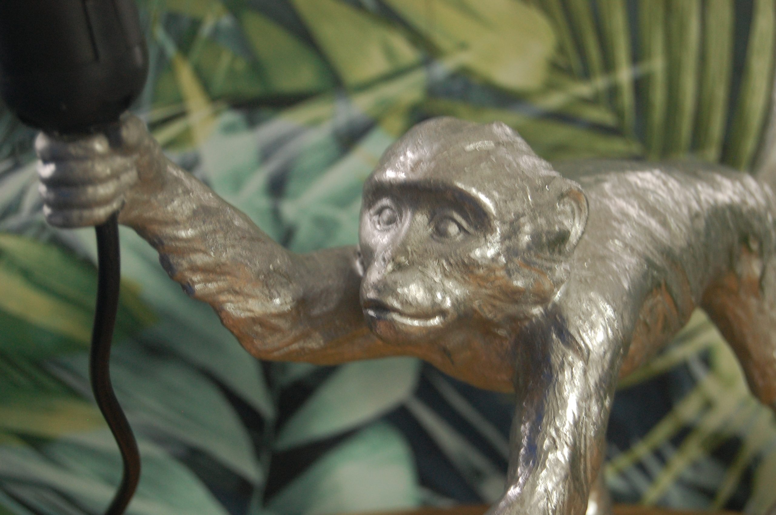 Bring a touch of charm to any space with this captivating Antique Silver Crawling Monkey Lamp.
