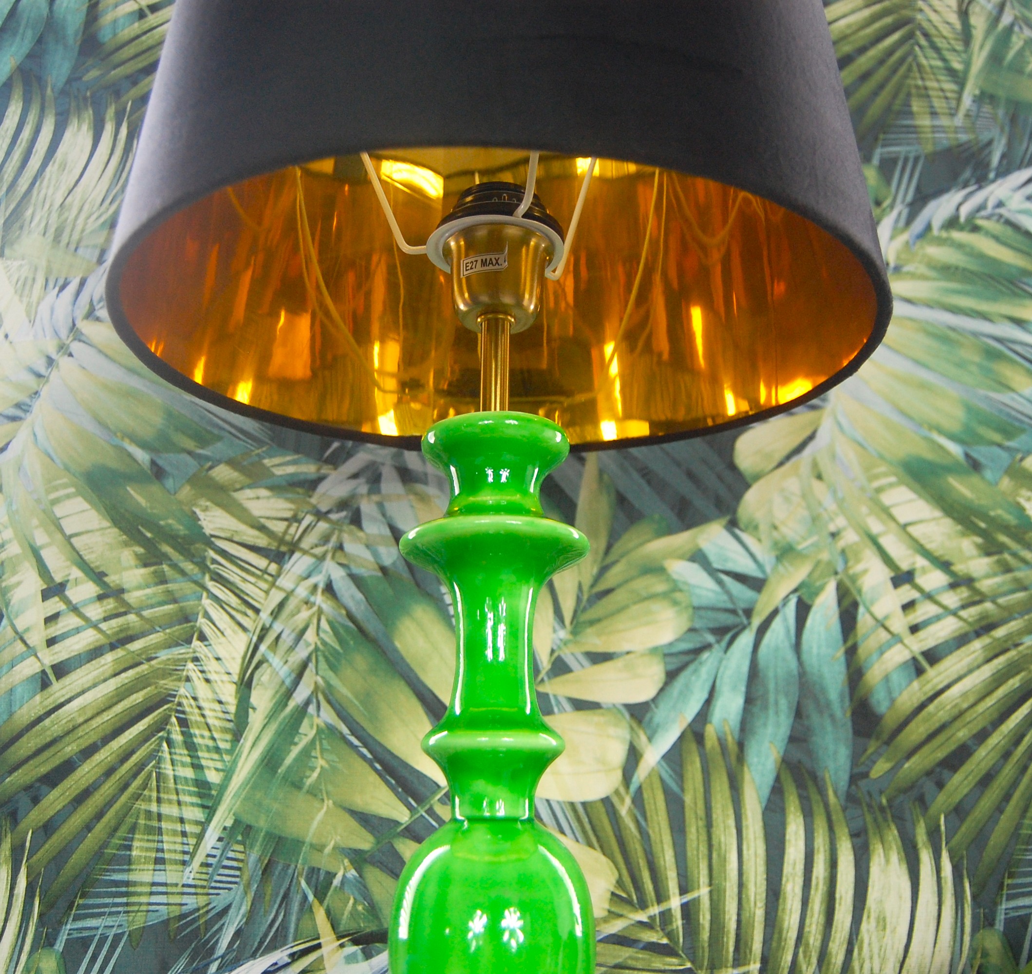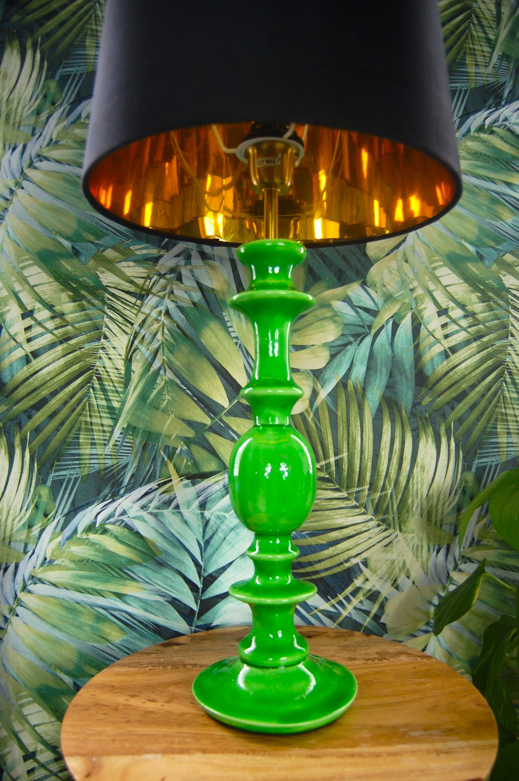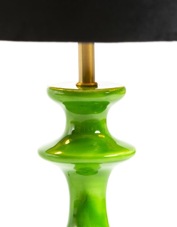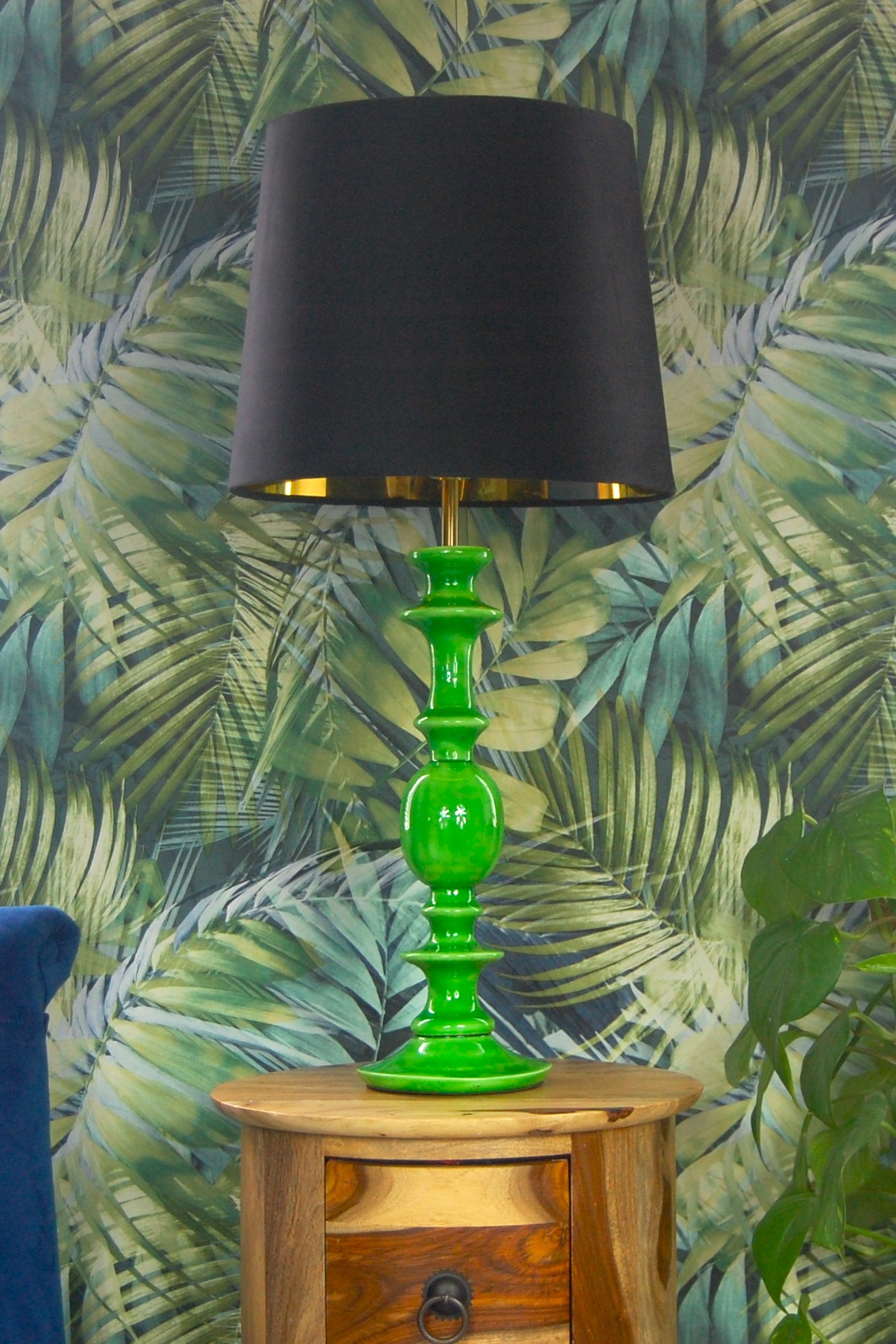 lluminate your space with style and sophistication. Introducing the Green Gloss Wooden Table Lamp With Lined Velvet Shade – a vibrant, modern accent piece that will elevate any room.