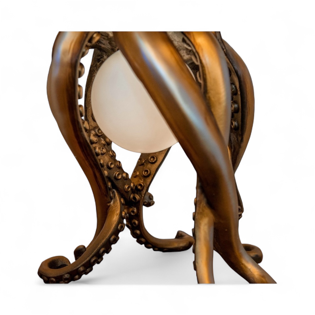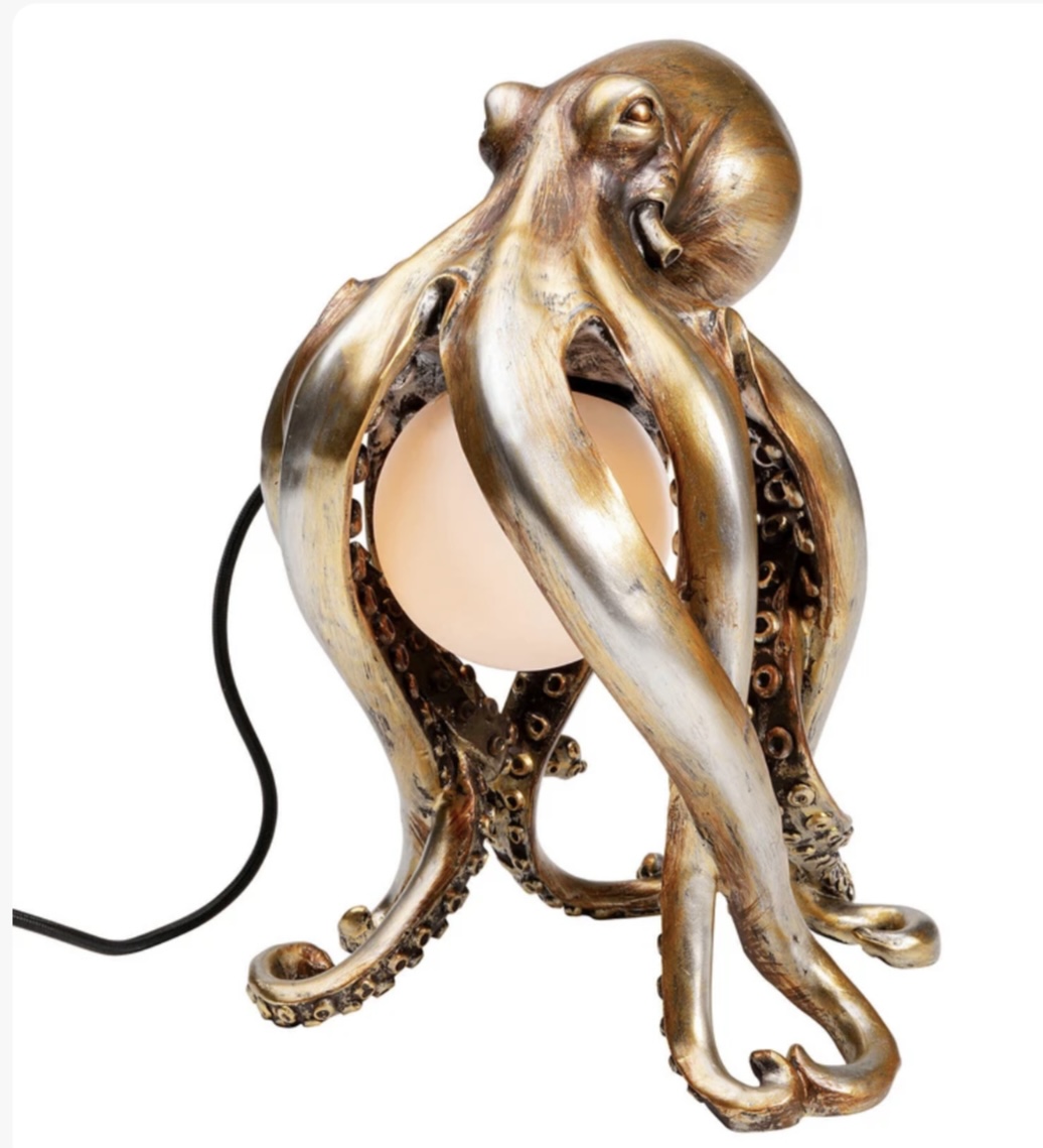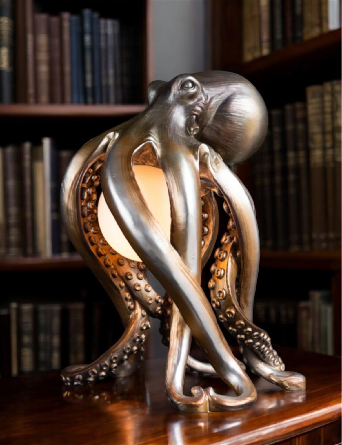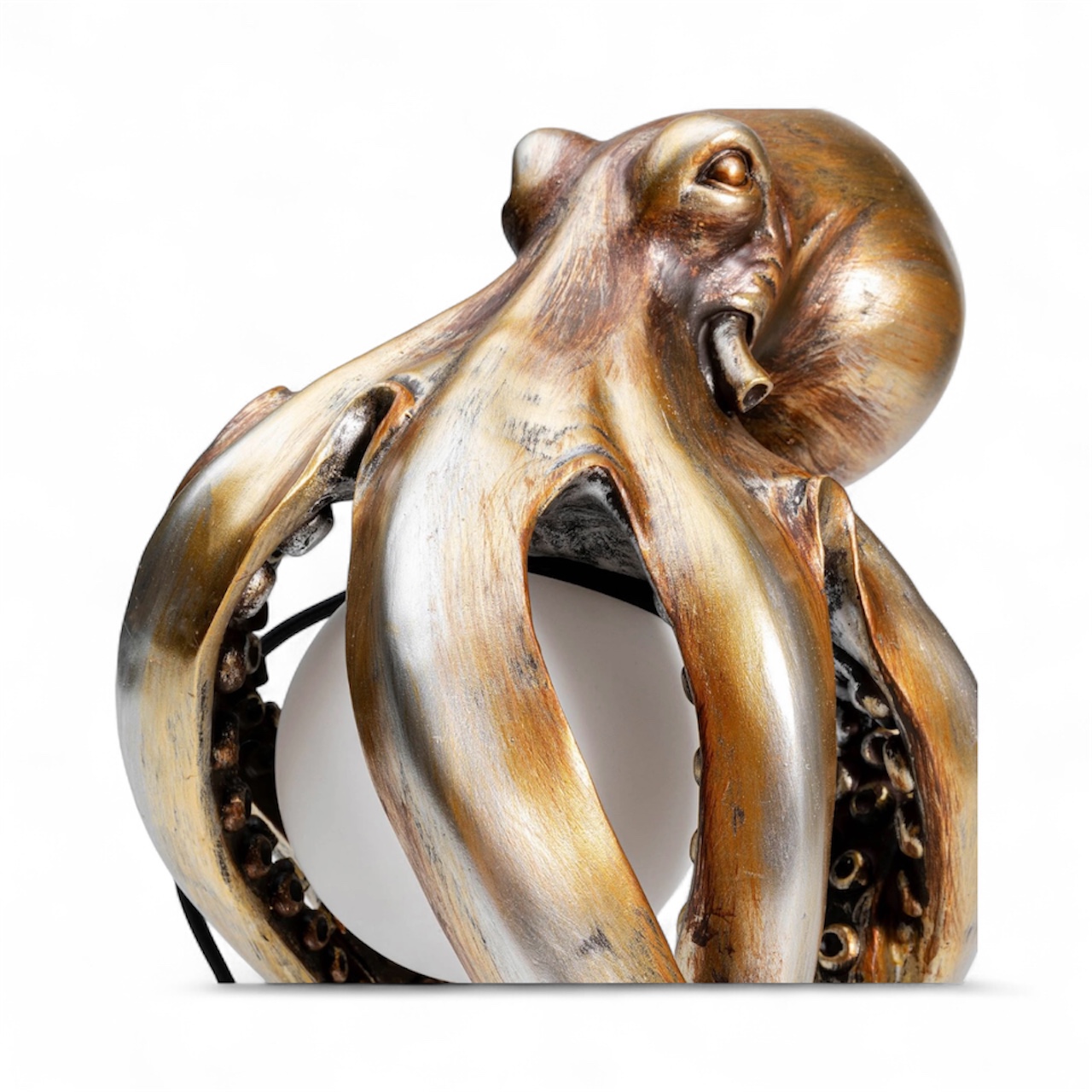 This eye-catching lamp is the perfect fusion of form and function, elevating any room with its striking silhouette and elegant metallic tones. The octopus-inspired base lends an air of whimsy, while the matte gold finish radiates a sense of refined luxury. Whether perched on an end table or nightstand, this versatile lamp instantly adds a touch of style to your space.