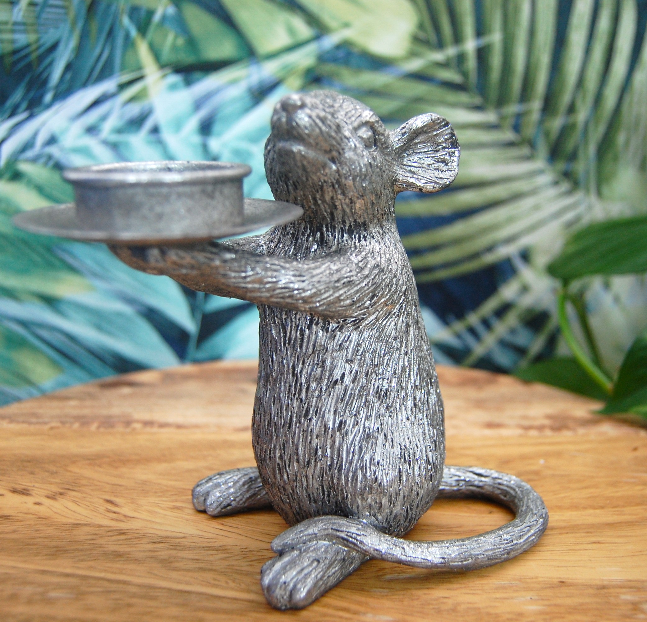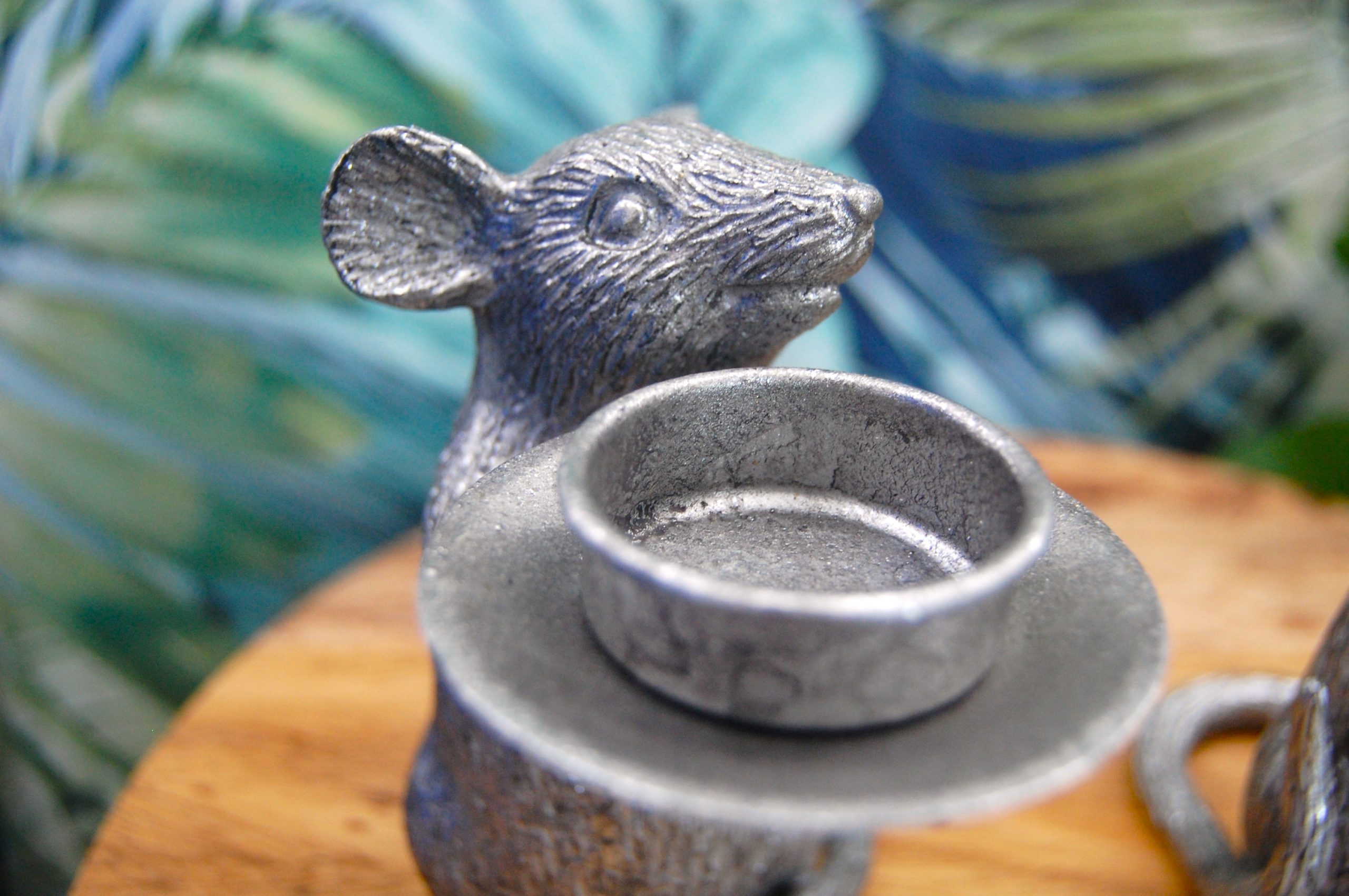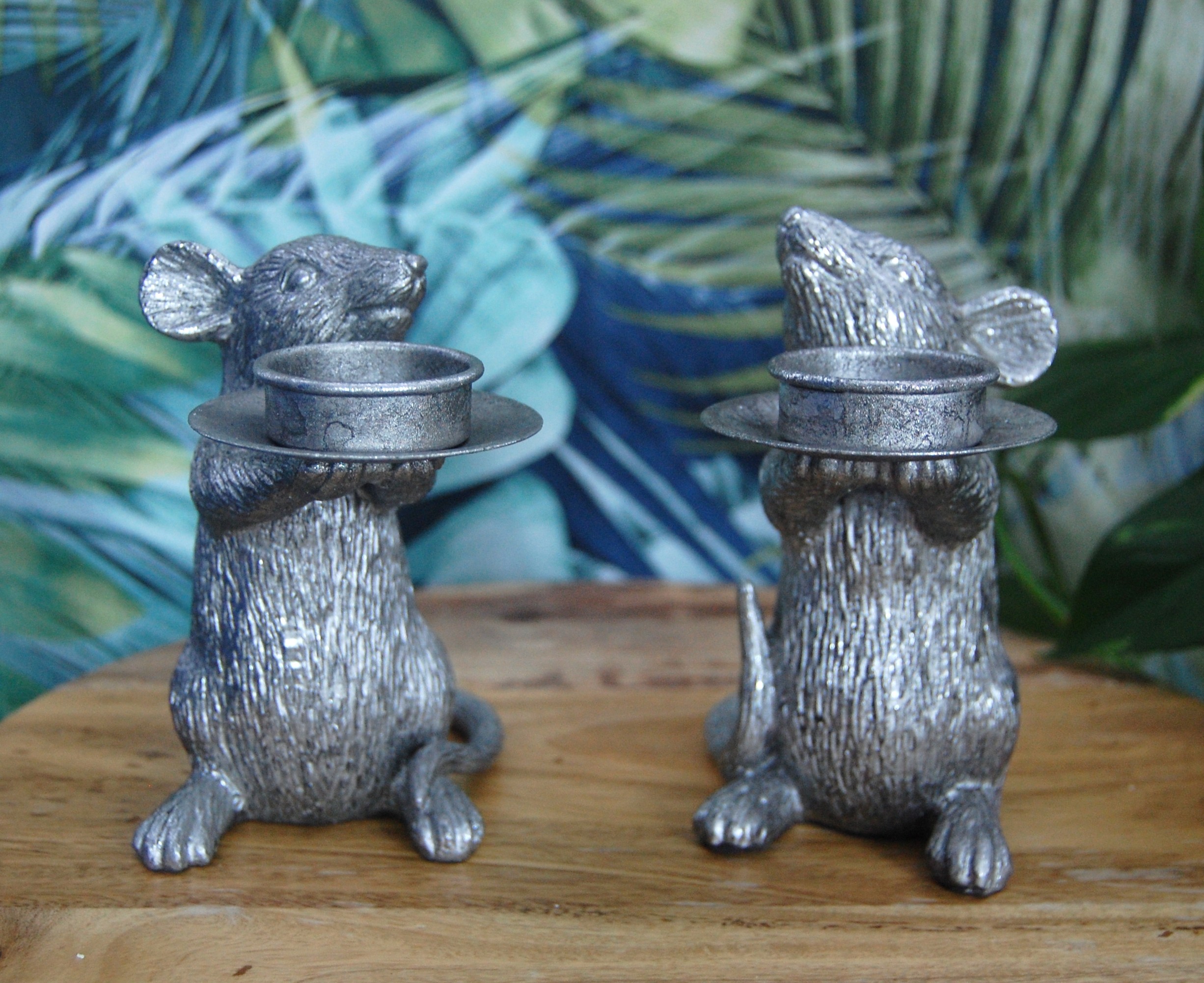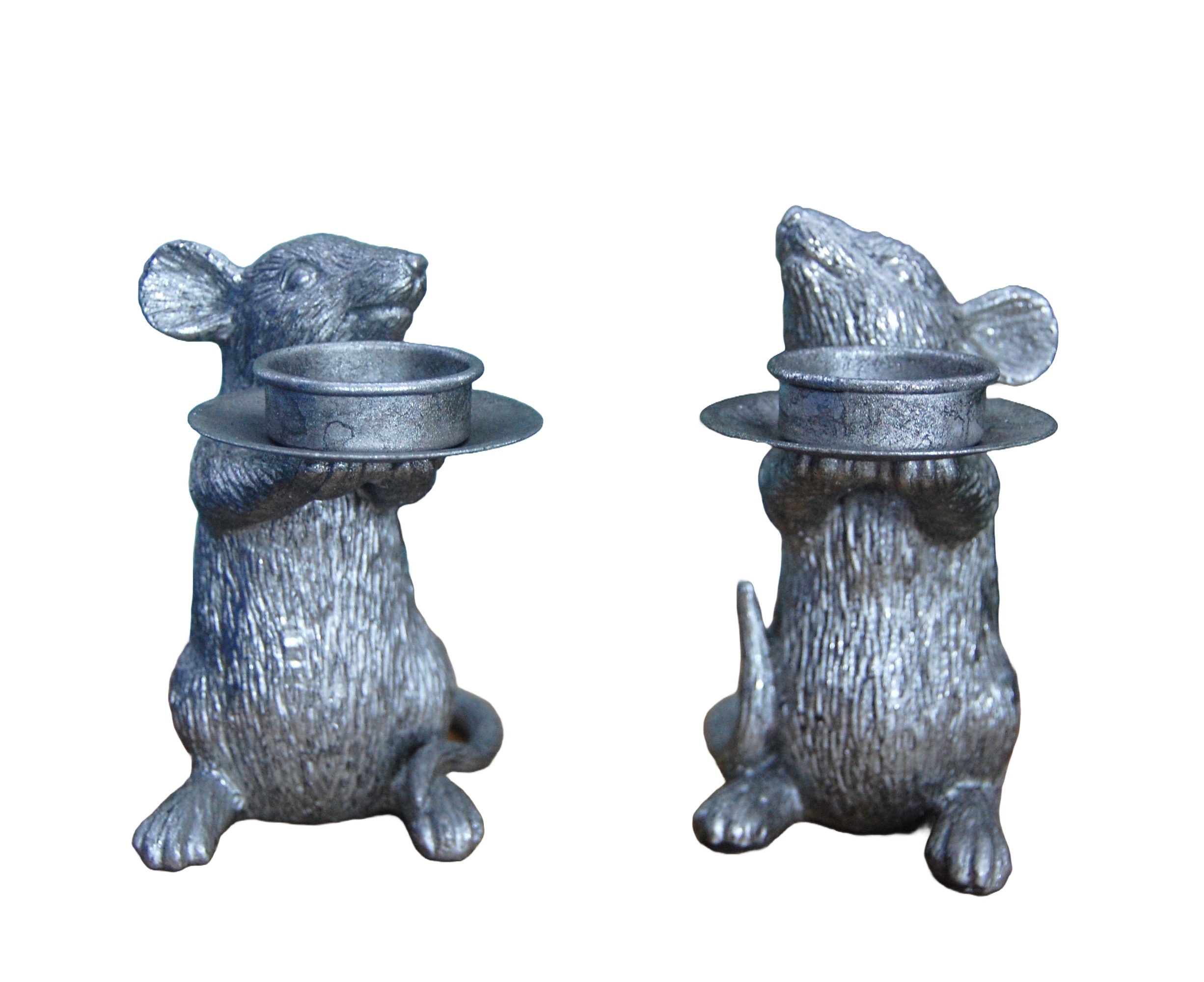 Add a touch of whimsical charm to your home with these Pair Of Silver Mouse Candle Holders.