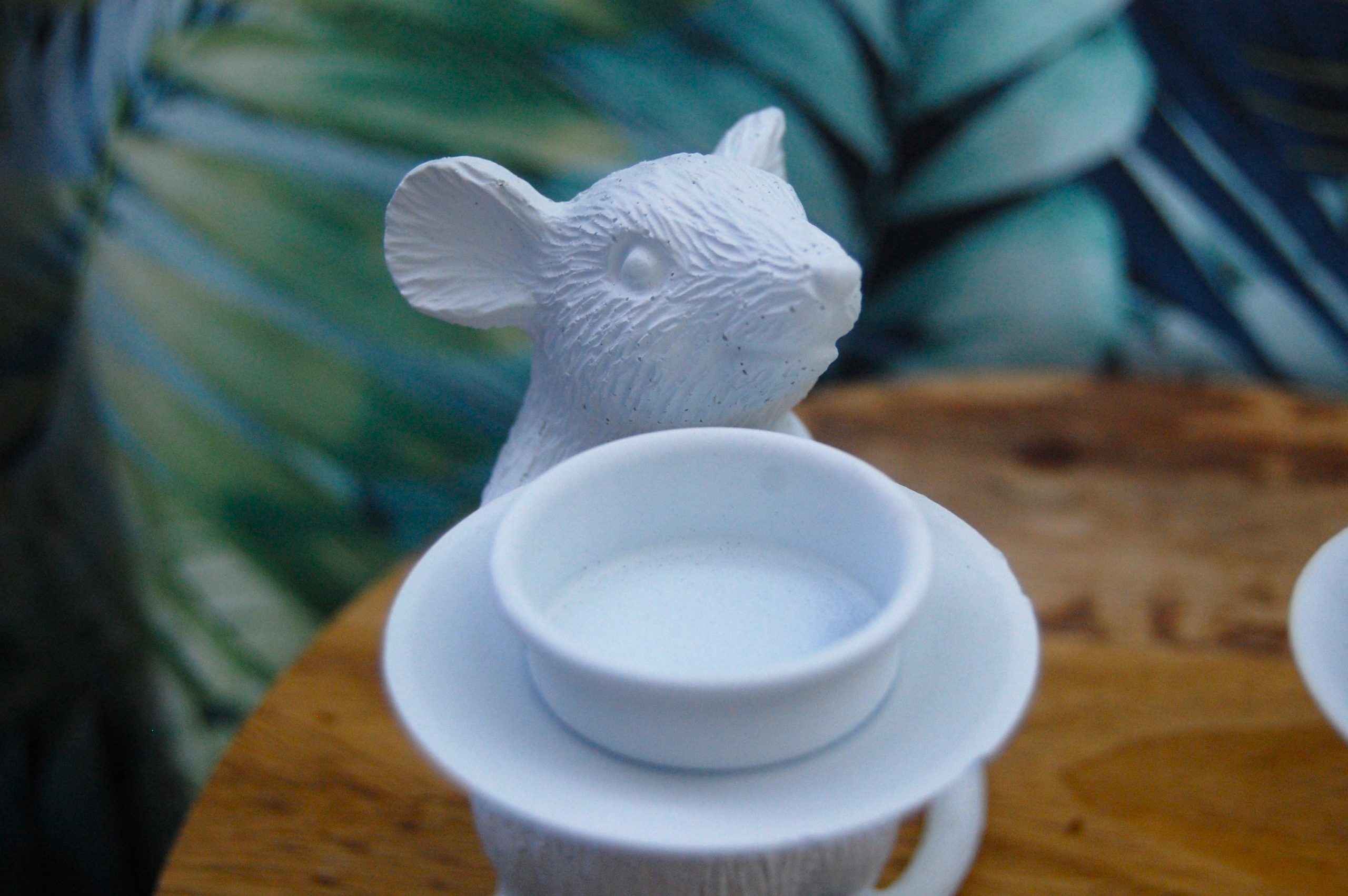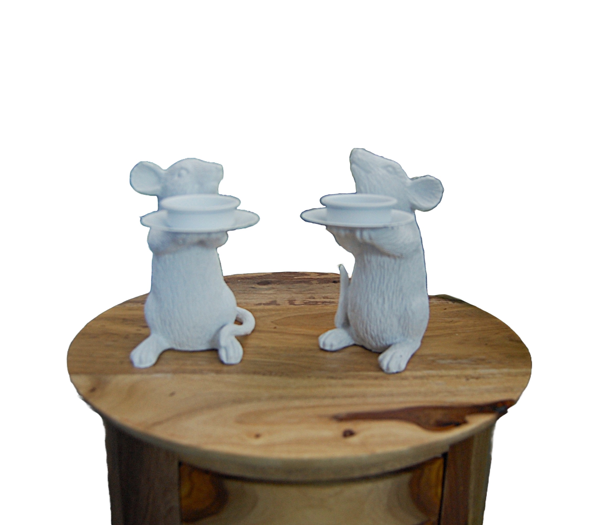 Add a touch of whimsical charm to your home with these Pair Of White Mouse Candle Holders.