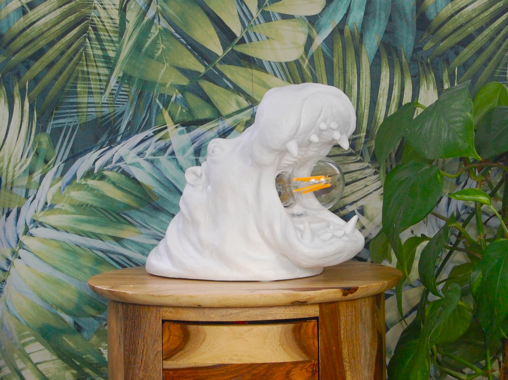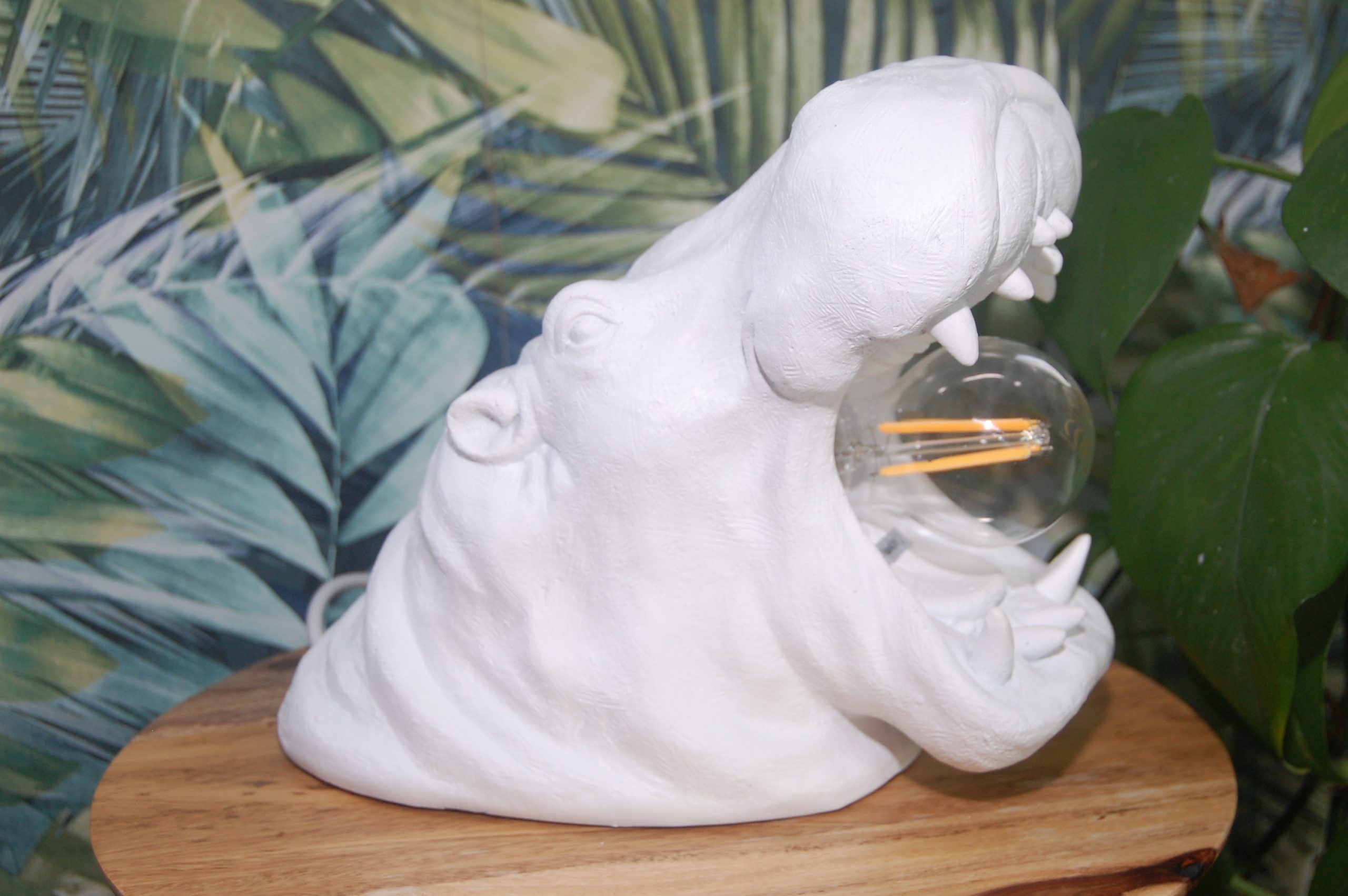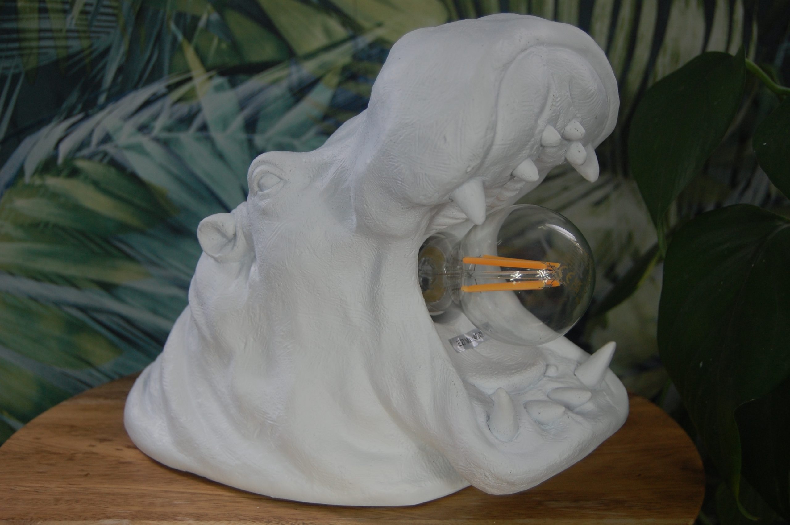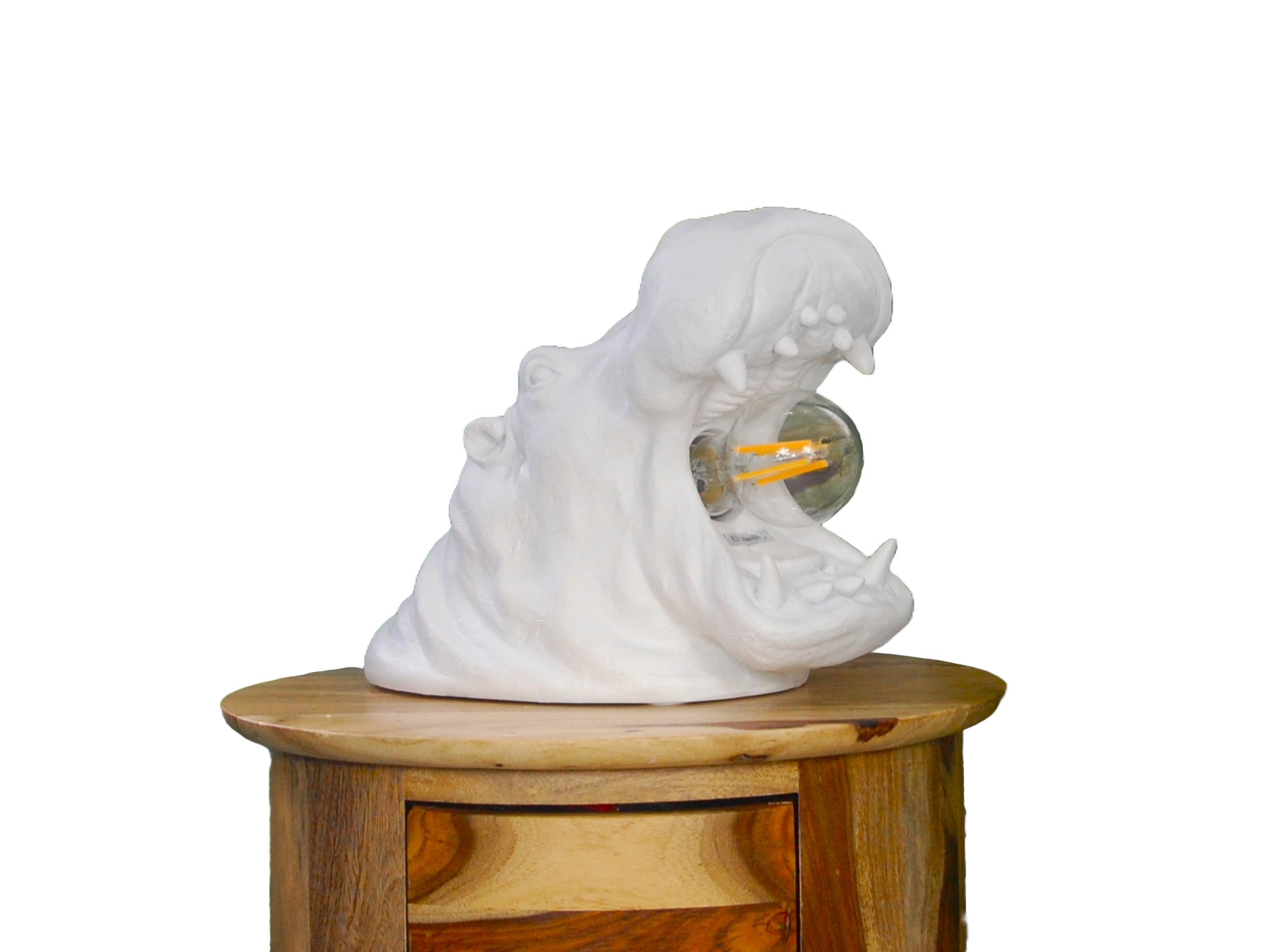 Bring the untamed spirit of the wild into your home with the captivating White Roaring Hippo Table Lamp.